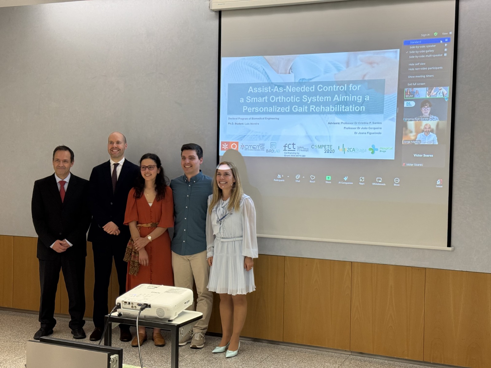 Our exceptional colleague, Simão Carvalho, has successfully completed his PhD in Biomedical Engineering, titled “Bio-inspired Control for Lower Limb Neuroprosthesis Towards Motor Reestablishment.” This impressive accomplishment marks the culmination of Simão’s pioneering research, which focused on the design and development of a bio-inspired control architecture for a wearable lower limb neuroprosthesis. His research proposes an innovative approach to promoting the reestablishment of motor pathways in individuals with incomplete spinal cord injuries (iSCI), utilizing non-invasive functional electrical stimulation (FES) tailored to each user. By offering personalized, muscle-evoking stimulation, his work highlights the potential for transformative advancements in motor recovery and rehabilitation. Congratulations to Simão on this extraordinary achievement!