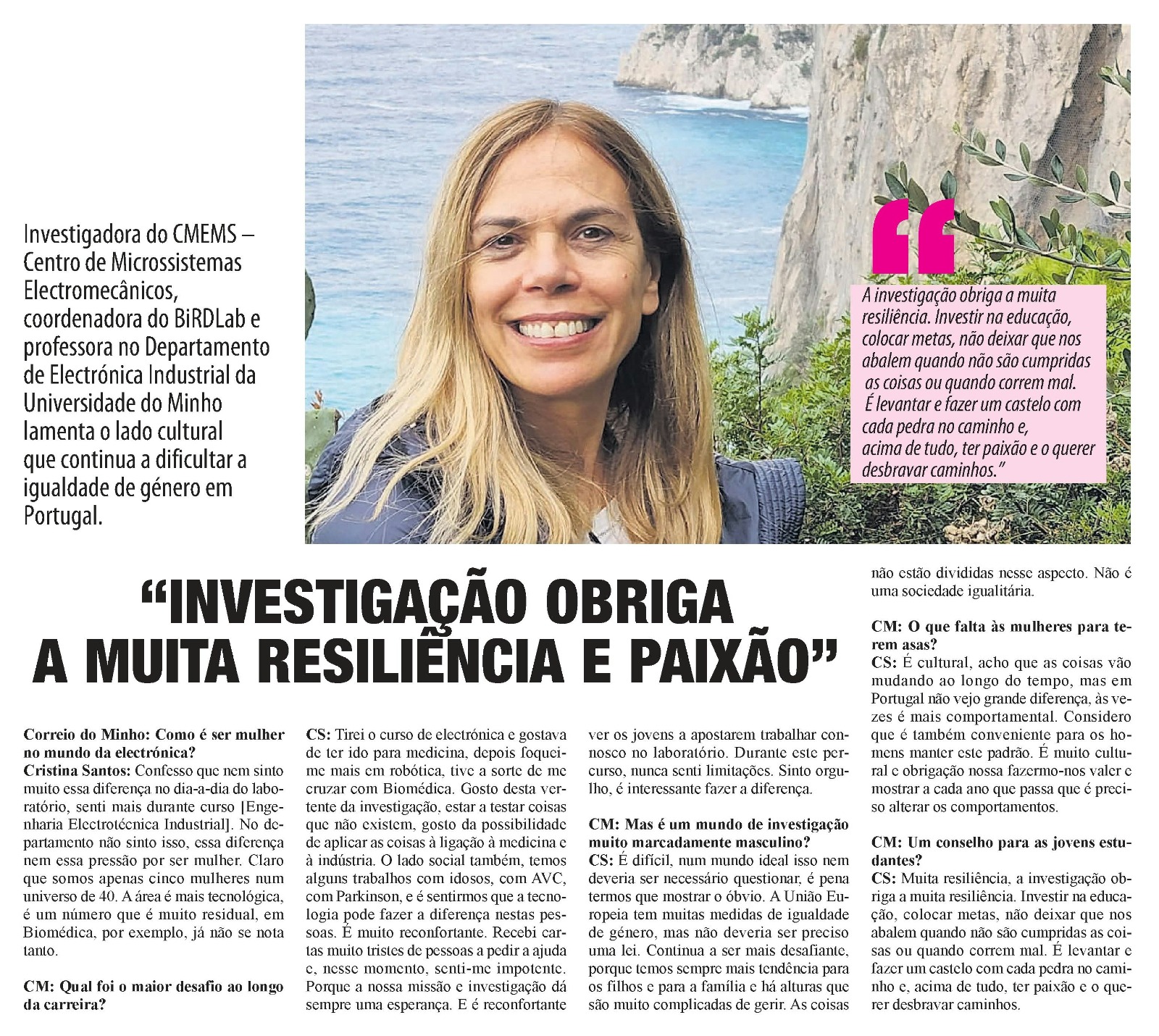 Following International Women’s Day, we are sharing an inspiring interview given by our Principal Investigator (PI), Professor Cristina Santos, to Correio do Minho.